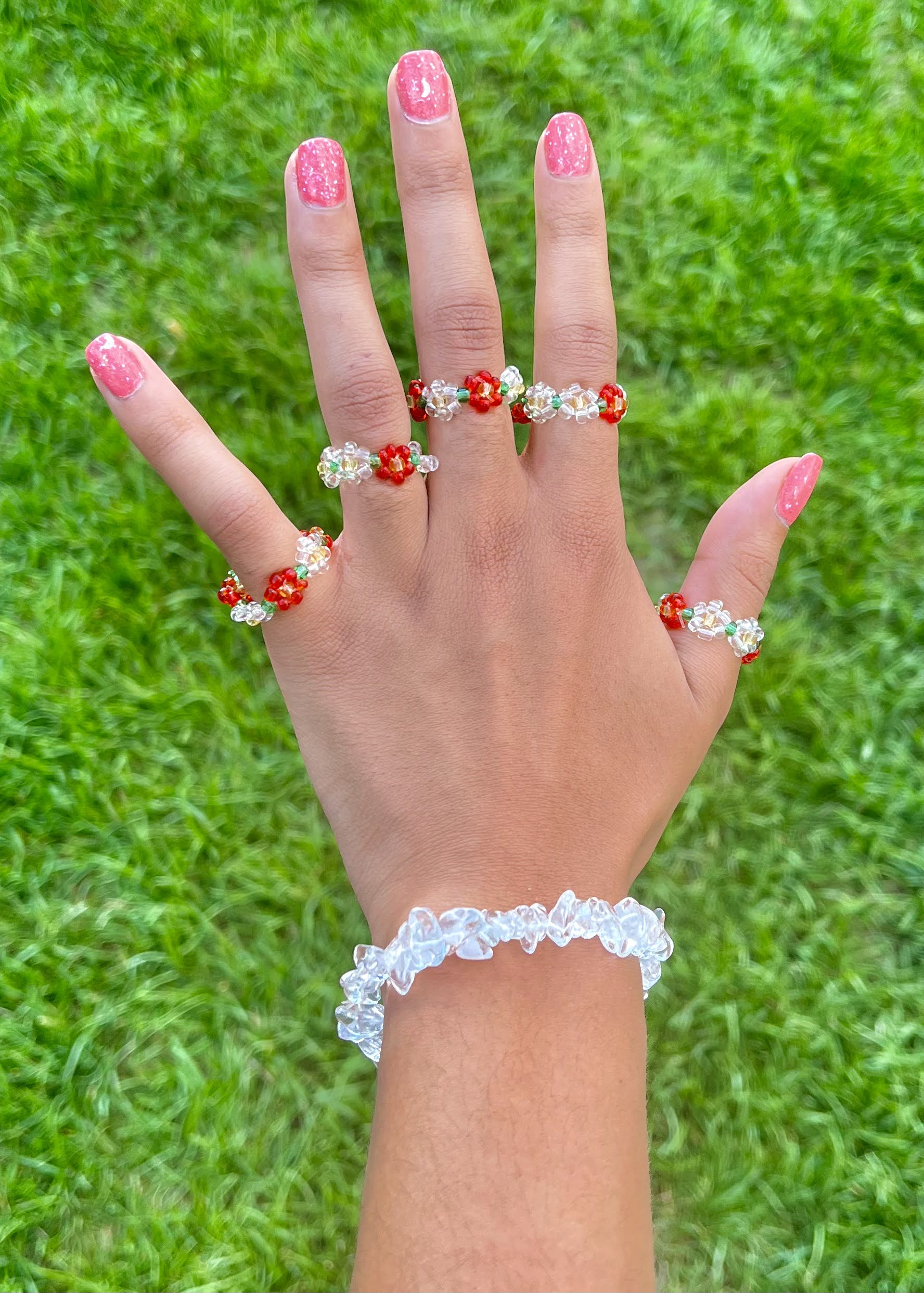 Each ring is lovingly handmade using tiny beads, meticulously arranged to blossom into a beautiful floral design.